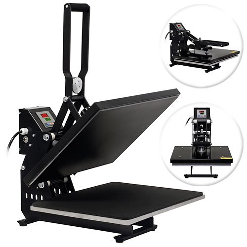 This commercial-grade heat press from American Specialty Tool has a large 16" x 20" element (actual size 15-3/4" x 19-3/4") that allows you to create custom t-shirts, license plates, and many other unique and fun items. Transfer onto an array of flat surface materials such as fabric, metal, ceramic, wood and glass. Space-saving clamshell design features an elevated, 9/16" thick aluminum lower platen to easily insert and remove t-shirts from the machine. The upper platen opens automatically once the pre-set timer goes off to avoid over exposure to the heating element. The element is non-stick and Teflon-coated to prevent scorching of transfers and does not require a separate silicone/Teflon sheet. Removable and reversible hi-temp silicone pad. The pressure-adjustment knob allows you to adjust the pressure according to the thickness of the material to which you're transferring. Digital temperature control lets you preset the temperature (in Fahrenheit); the element will stop heating when the preset temperature is reached. This commercial-grade heat press is true 1,600 watts rated with a temperature range up to 750 degrees Fahrenheit. Arrives fully assembled and ready to use with pre-installed Teflon-coated element, removable and reversible hi-temp silicone pad, and operating instructions (printer and paper not included).